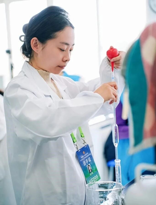 经过激烈角逐,窦子璇在集团竞赛中获得第一名,拿到全国总决赛“入场券”。在决赛环节,面对高强度考核,窦子璇心态沉稳,处理样品时,她手持移液管姿势标准,精准移取;仪器操作中,她熟练调试参数,动作流畅;数据分析阶段,她严谨推导,不放过细微误差。