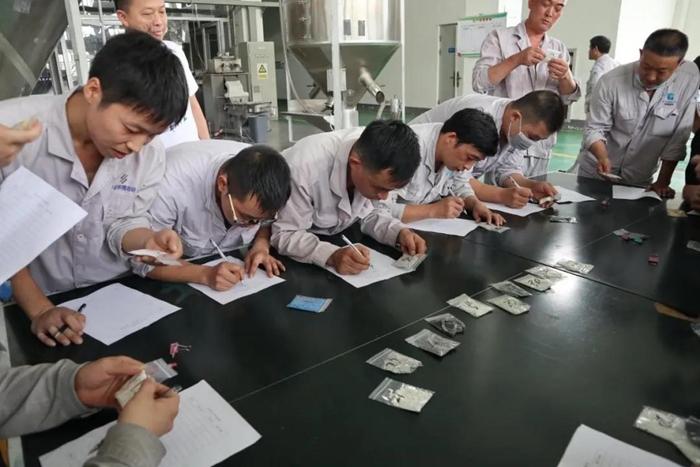 此次竞赛分为双螺杆挤出机拆装螺杆比赛、原材料识别及产成品识别比赛,以及开机实操比赛三个部分。在前期组织干部职工进行理论培训基础上,25日上午正式拉开了现场比拼的帷幕。